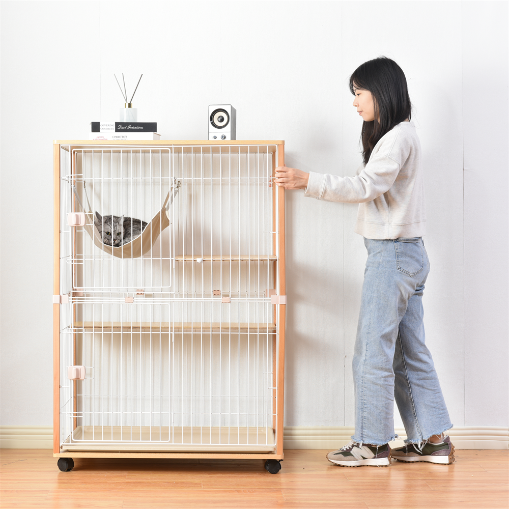 猫 キャットケージ 木製 キャットハウス ネコ ハウス 留守番 保護 脱走防止 多頭飼い 多頭 スチール 二段