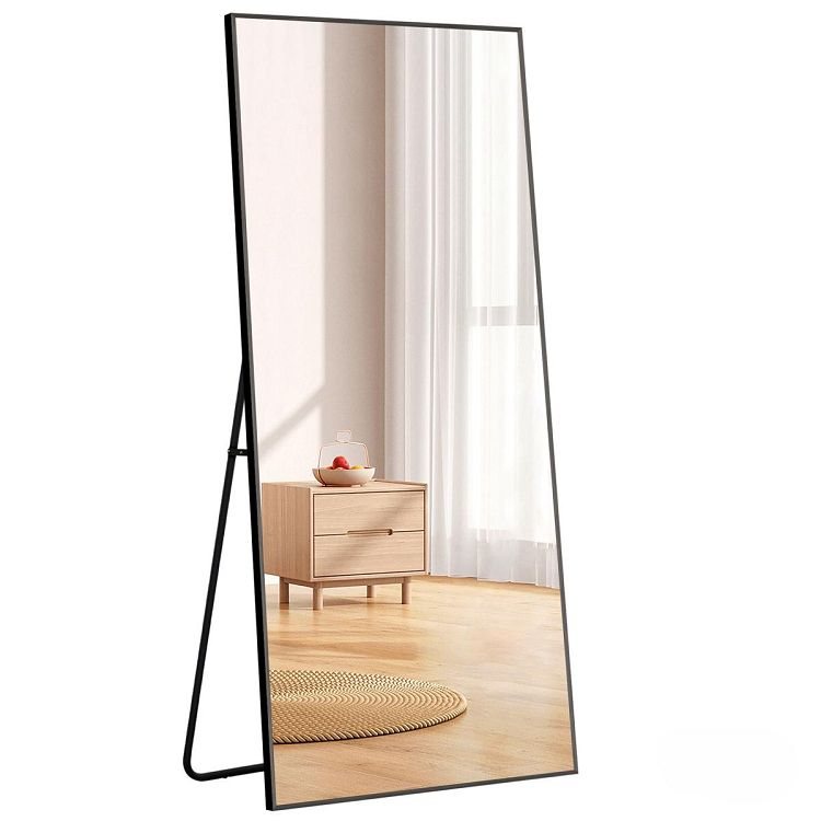 全身鏡 姿見鏡 スタンドミラー アルミ 直角 壁掛けミラー 立てかけ 姿見 鏡 ミラー おしゃれ 大型 飛散防止 160*60 ブラック