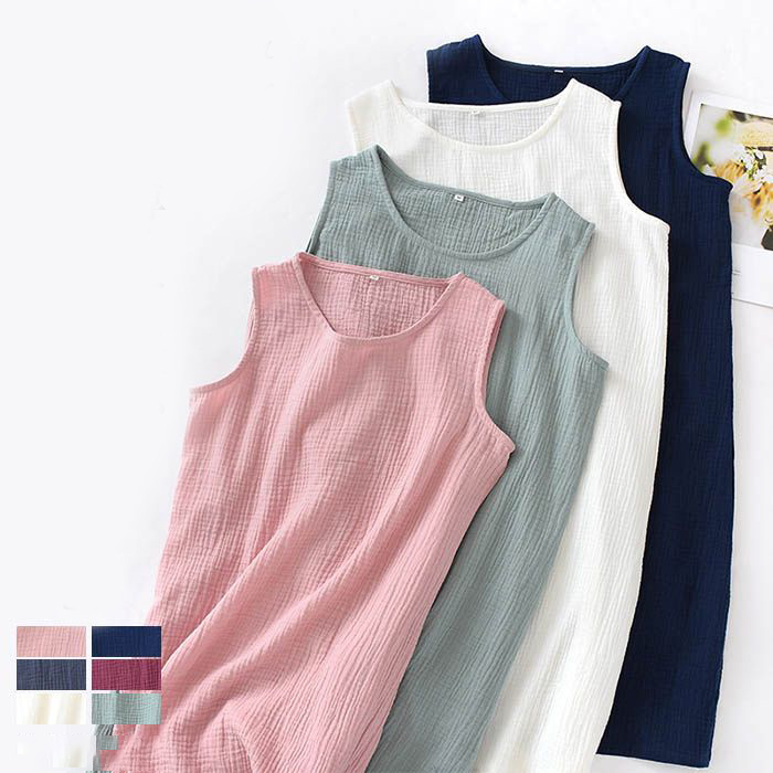 綿100% 部屋着 ネグリジェ ガーゼパジャマ レディース ワンピース ルームウェア ノースリーブワンピース ルームワンピース ノースリーブ 膝丈 コットン 無地 カジュアル ナチュラル