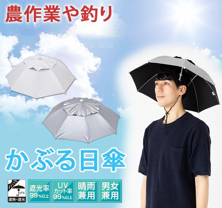 メンズ レディース かぶる日傘 ハットアンブレラ 農作業 ガーデニング 釣り 草苅 つば広帽子 頭に被る傘 帽子の日傘 日よけ 遮光 遮熱 UVカ