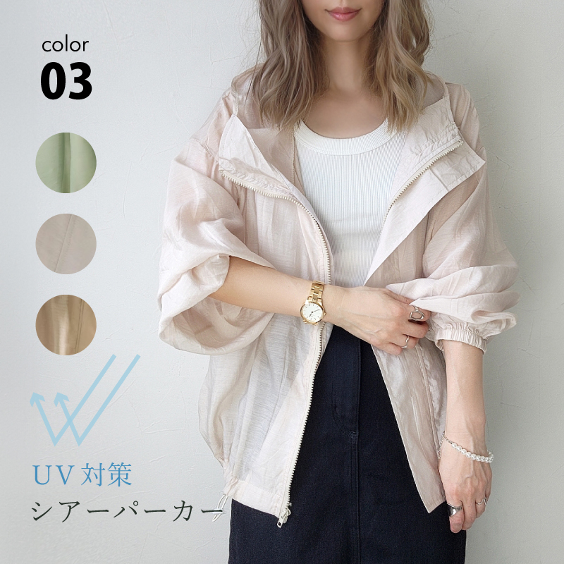 レディース UVパーカー UVカット パーカー パーカー 春 夏 接触冷感 薄手 透け感 袖ボリューム ジップアップ ジャケット uvカット 撥水 速乾 通気 長袖 軽量 羽織 日常 通勤 通学 学生 アウトドア リゾート
