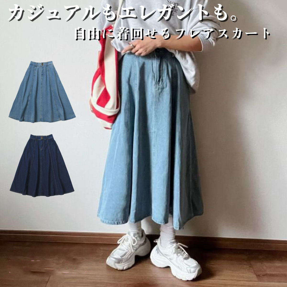 フレアスカート デニム Aライン スカート レディース ロング ミモレ丈 ハイウエスト ロングスカート フレア デニムスカート カジュアル ゆったり かわいい 大人可愛い 大人 ジーンズ ガーリー ミモレ丈 大きいサイズ 丈 韓国ファッション