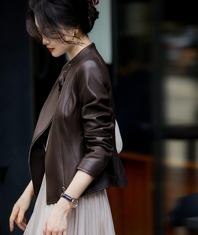 本革 羊革 レザージャケット 革ジャン ダブルライダース ショート丈 短ジャンパーブルゾンスレンダーライン細身レディースファッションコートジャケット ライダースジャケットGジャケット