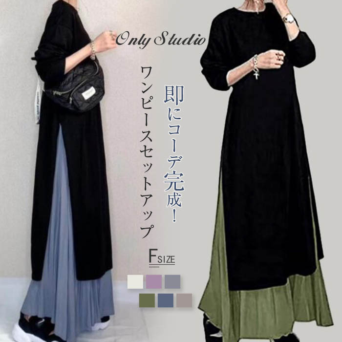 ワンピース セットアップ レディース 春 秋 長袖 ロング ワンピース スカート セットアップ マキシ丈 ワンピ 秋 冬 通勤着 可愛い 秋服 ゆったり 2点セット