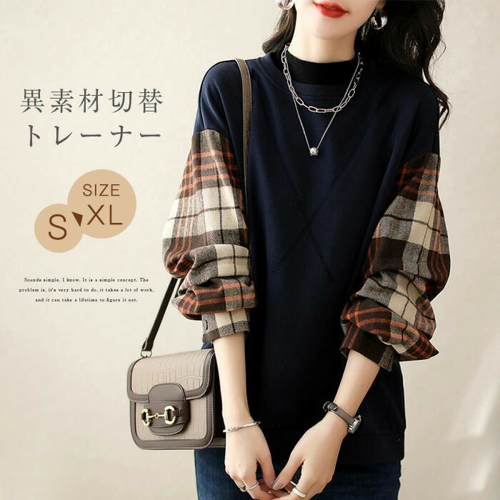 ブラウス 異素材 切替 トレーナー レディース プルオーバー フェミニン 森ガールレディースファッション トップス シャツ ブラウス