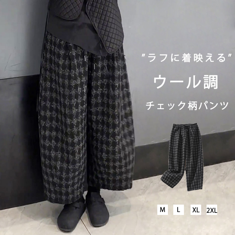 バルーンパンツ レディース 秋冬 チェック パンツ ウェストゴム ポケット バルーン イージーパンツ ウールパンツ 秋 冬