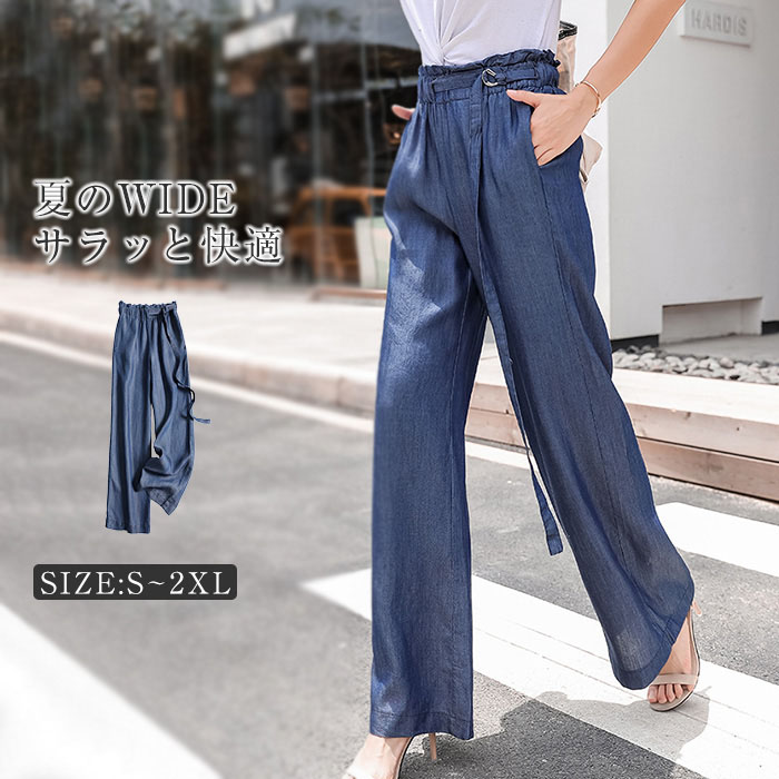 デニムパンツ 接触冷感 ワイドパンツ レディース カット 大きいサイズ ボトムス ガウチョパンツ デニム 春夏 紫外線対策 ロングパンツ デニムワイドパンツ 涼しい ひんやり 冷感 夏デニム ウエ