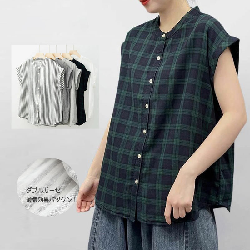 レディース トップス 半袖シャツ チュニック シャツ ブラウス 綿 コットンシャツ 夏シャツ 白シャツ ガーゼシャツ トップス 綿100% コットン ブラウス シャツブラウス 春 夏 チェック柄 無地 ゆったり 2層ガーゼ 着心地よい 通気性 送料無料 M L