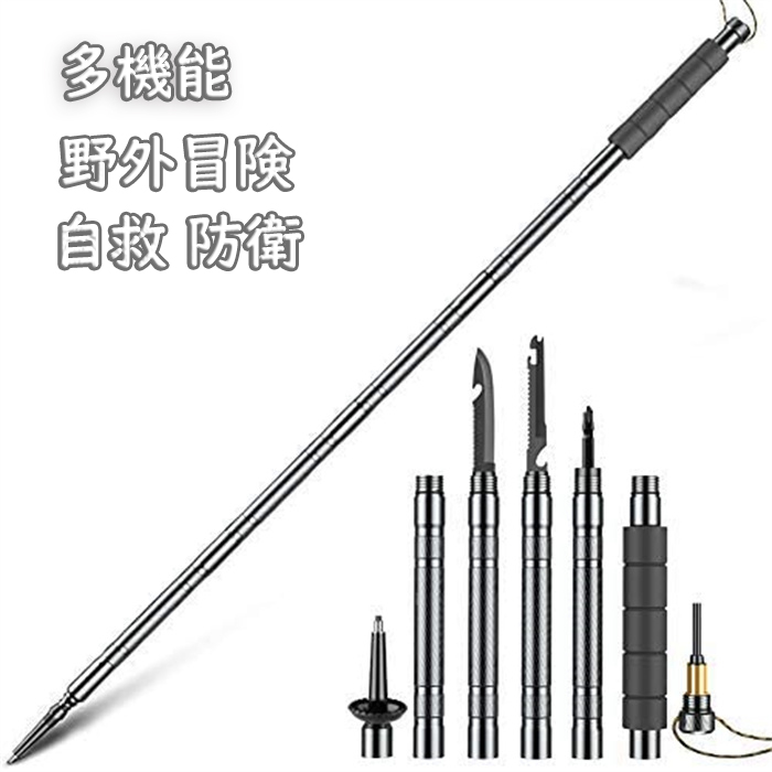トレッキングポール 多機能トレッキングポール アウトドア 防犯用具 自救サバイバル 山登り ストック コンパクト式 ナイフ、鋸、ドライバー、呼び子、火打ち石、コンパス多機能付き