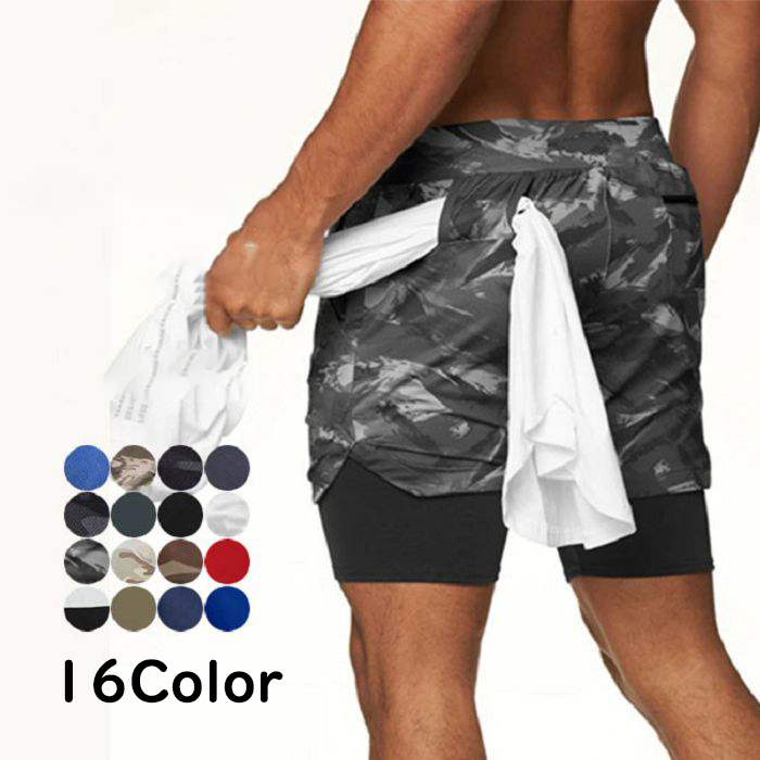 メンズ スポーツパンツ ストレッチ 夏 短パン ランニングパンツ 迷彩柄 吸汗 速乾 伸縮 スポーツウェア ボトムス 偽二枚 レイヤード スマホポケット ショートパンツ ハーフパンツ 男性 ボクシング