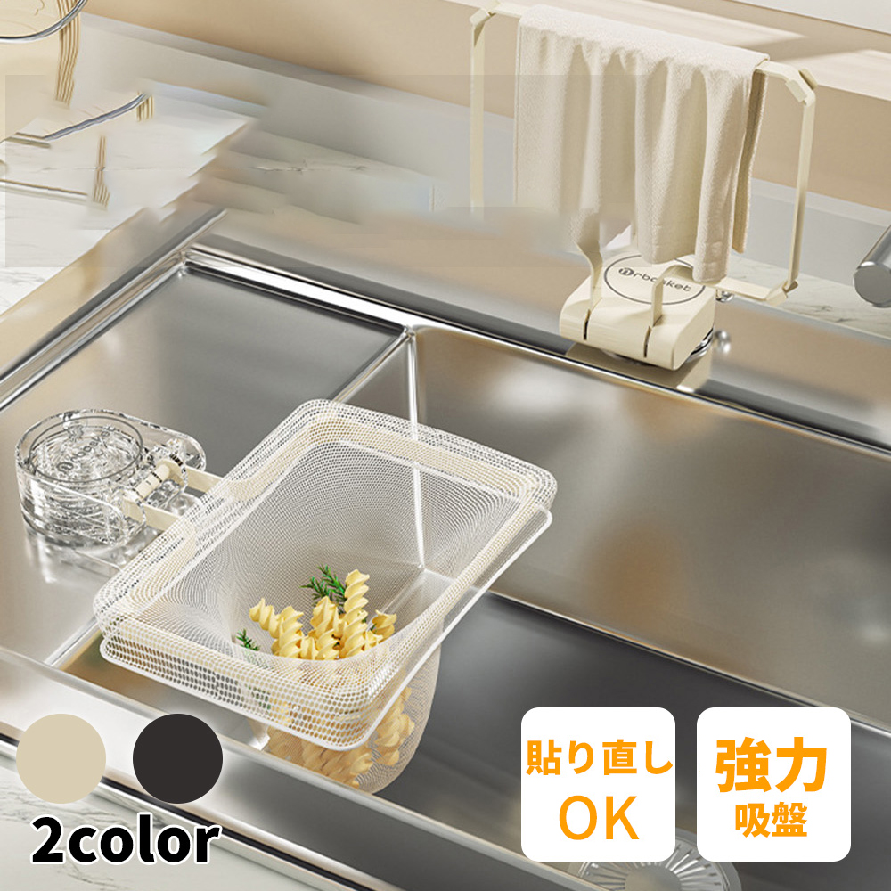 吸盤式 水切りネットホルダー 生ゴミ処理 タオルを掛ける 三角コーナーいらず いらず ホルダー 強力吸盤 本体 耐荷重が強い ゴミ受け 折りたたみ 省スペース シンク 台所 キッチン キッチン用品 おしゃれ