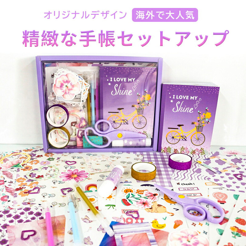 手帳セット日記帳 かわいいド シール帳 DIY手帳 ノートセット メモ帳 日記帳 付箋本 和紙テープ 手帳素材パック 女の子 小学生 子供 進学 クリスマス 誕生日 プレゼント