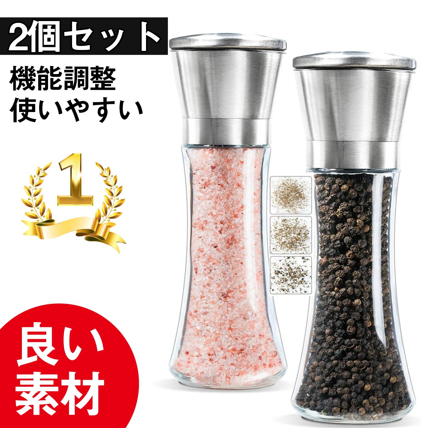 ペッパーミル 胡椒ミル岩塩ミル 胡椒料理用品 胡椒製作器2点セット 粗さ調節可能 ソルトミル 胡椒挽き こしょう挽き キッチンツール スパイスミル 調理用品 調理道具 調理小物