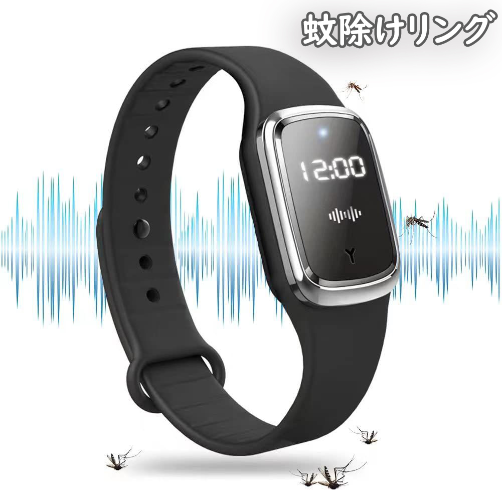 超音波蚊よけ 虫除けリング 蚊除けリング 蚊よけブレスレット 超音波 虫よけ 可USB充電式 腕時計 長い待機時間 携帯便利 アウトドア山登り 釣り 公園 子供/大人