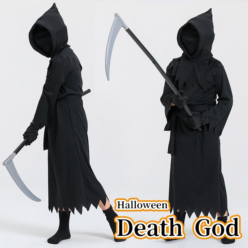 【鎌付き】ハロウィン 子供 コスプレ 死神 無地 黒 子供 黒い死神 イベント ステージ 文化祭 お祭り コスチューム 変身 変装 実物撮影 学園祭 ワンピース ハロウィン仮装 Halloween 演出服 子供用 コスプレ衣装 キッズ