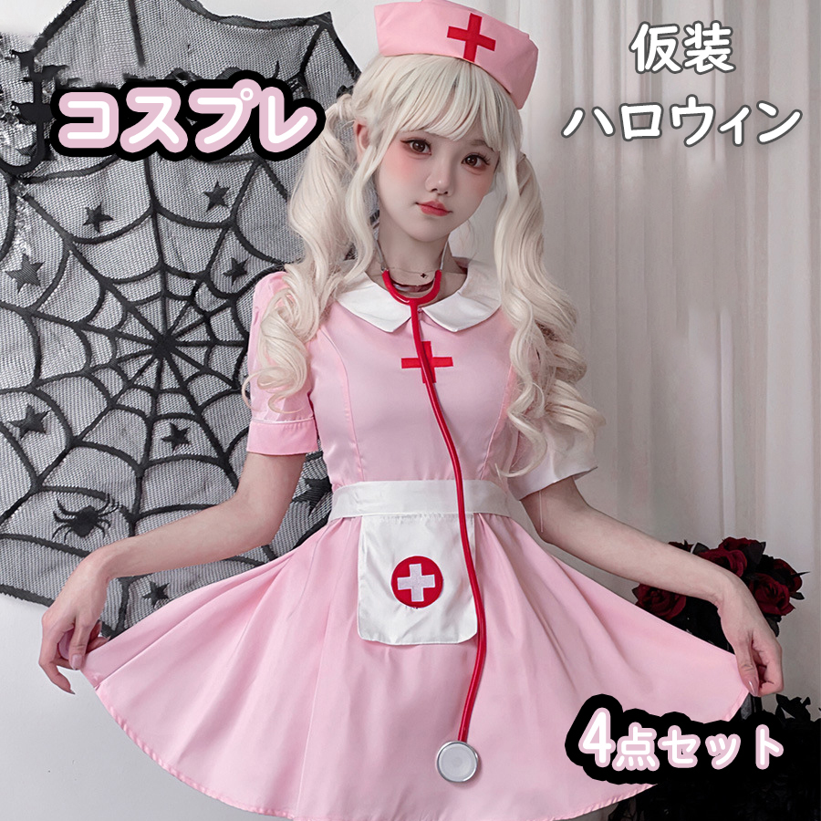 ハロウィン 仮装 cosplay レディース 看護師 コスプレ衣装 4点セット 女性用コスプレ イベント クリスマス ステージ 文化祭 お祭り コスチューム 変身 変装 実物撮影 学園祭 コスプレ 可愛い セクシー 仮装 スカート ドレス