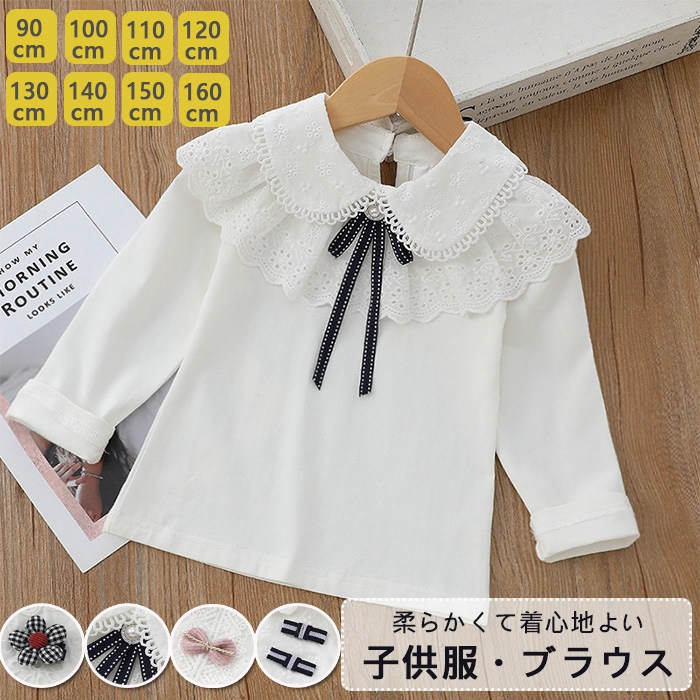 ブラウス 女の子 入学式 卒業式 小学生 フォーマル 長袖 白 ブラウス 子供服 女の子 トップス 長袖 白ブラウス ブラウス キッズ 子供服 制服 発表会 90-160CM