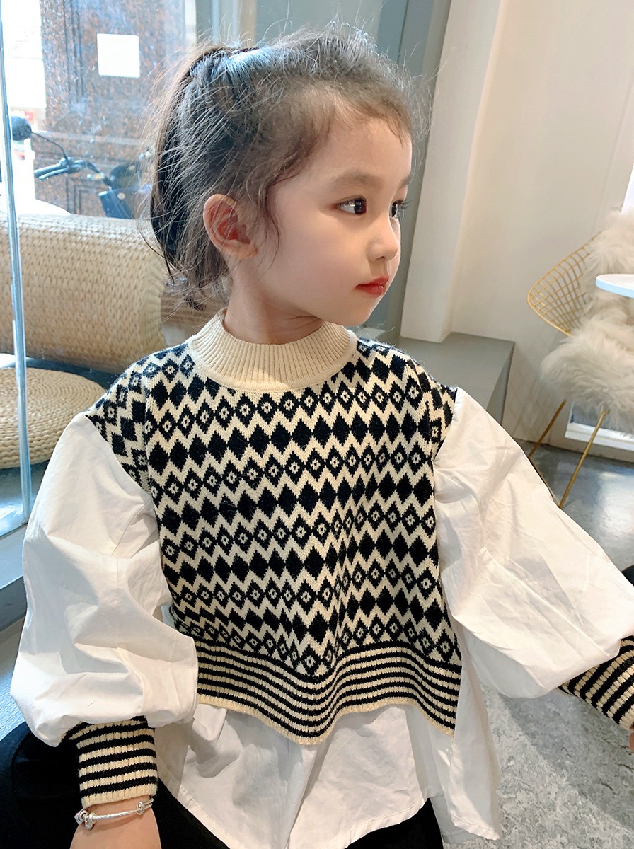 送料無料 ベスト レイヤードシャツ 子供服 子供 服 春秋 新作 トップス シフォン シャツ ブラウス モノトーン 長袖 ベスト 重ね着風 おしゃれ ママサイズ ルーズ 女の子 キッズ ジュニア 小学生 ユニセックス 95cm 100cm 110cm 120cm 130cm