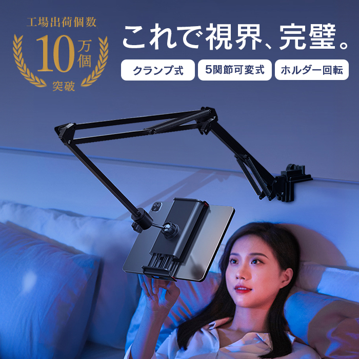 タブレットスタンド スマホスタンド タブレットアーム 携帯スタンド iPadスタンド 寝ながら ベッド用 テーブル用 ラック用 スマホ ホルダー 安定 揺れない iPad、Kindle
