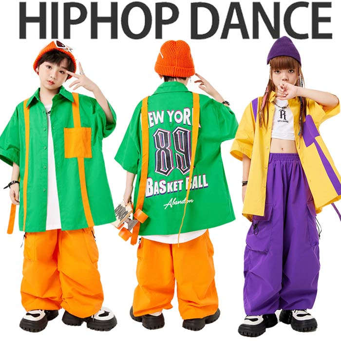 ダンスウェア 女の子 シャツ 半袖 カーゴパンツ ロングパンツ 長ズボン ダンス衣装 男の子 子供服 セットアップ ヒップホップ ジャズダンス ステージ衣装 ゆったり HIPHOP K-POP JAZ