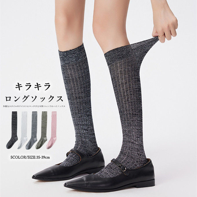 ハイソックス レディース キラキラ シンプル カジュアル 靴下 スニーカー パンプス 女性用くつした