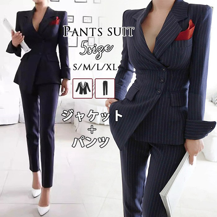 スーツ レディース パンツスーツ パンツ 着痩せ フォーマル ストライプ ジャケット パンツ 上下2点セット オフィス カジュアル 入学式 卒業式 卒園式 入園式 韓国 おしゃれ