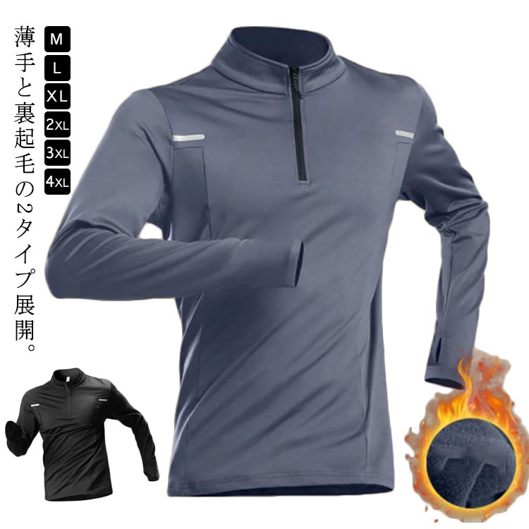 スポーツインナー シャツ 長袖 裏起毛 メンズ ハーフジッパー インナーシャツスポーツ アウトドア アウトドア ウェア メンズウェア 防寒インナー