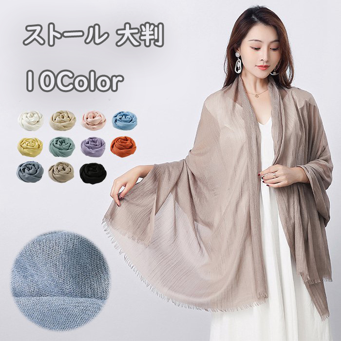 ストール 大判 薄手 マフラー 無地 10色 夏用ストール uvカット 紫外線対策 ショール 大判ストール 日焼け止め 冷房対策 綿麻風 シンプル カジュアル ポンチョマフラー旅行 結婚式