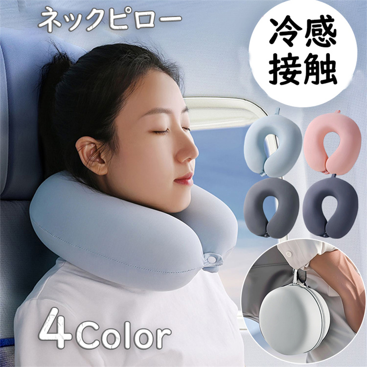 冷感ネックピロー ネックピロー 夏用 収納ポーチ付き クッション 折り畳み 全4色洗える 冷感接触 低反発 メモリー綿 ネッククッション 首枕 トラベルグッズ 出張 新幹線 車 低反発 座席 首枕 旅行 トラベル 機内 オフィス バス 枕 エアピロー 移動 コンパクト 車用