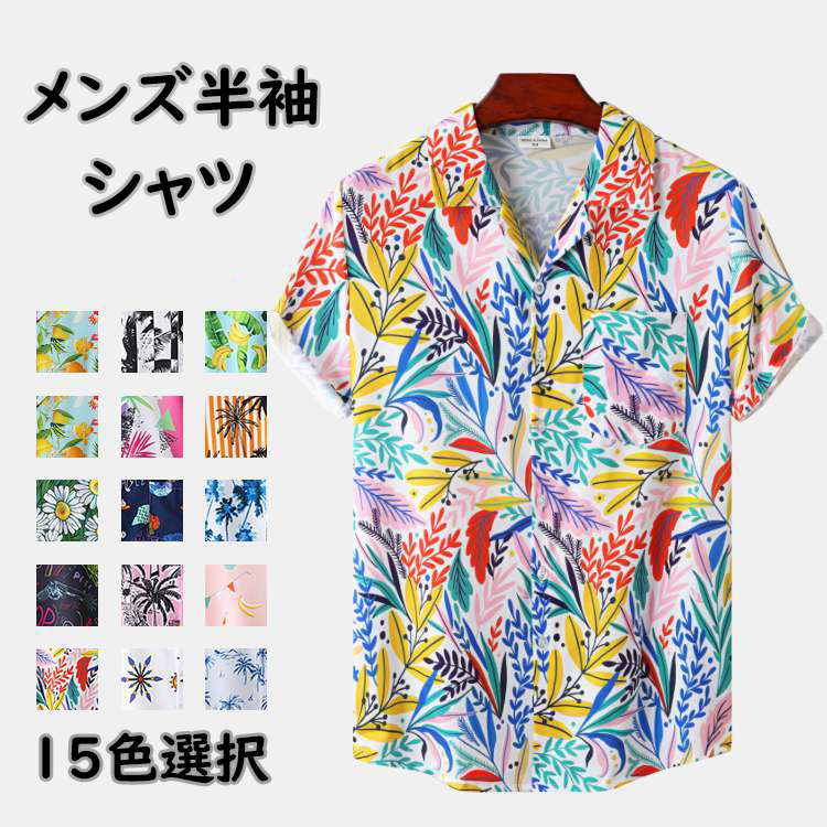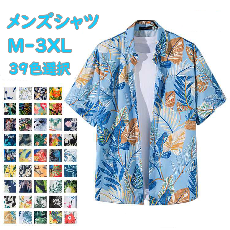 アロハシャツ メンズ Men's 半袖 トップス シャツ ビーチシャツ ボタニカル 総柄 カジュアルシャツ 夏 旅行 39色選択 M~3XL